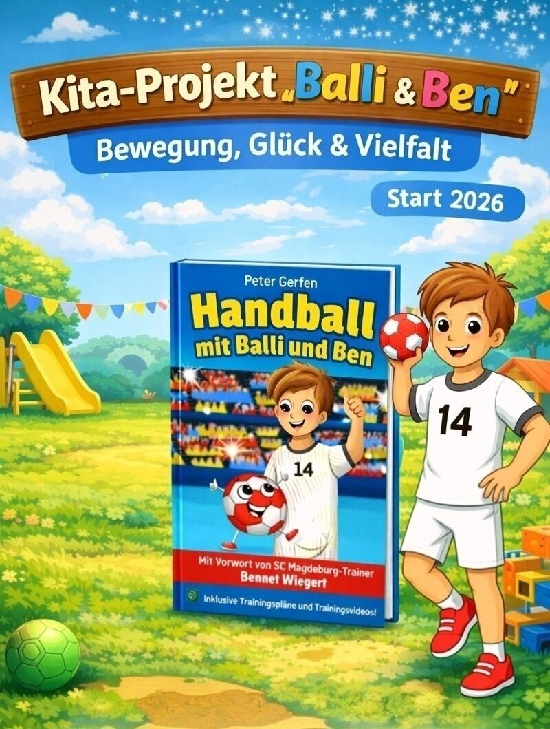 Im Mittelpunkt des Kita-Projekts steht das Buch „Handball mit Balli und Ben“ – mit genau den Figuren, die Kinder bereits vom Original-Cover kennen und lieben: